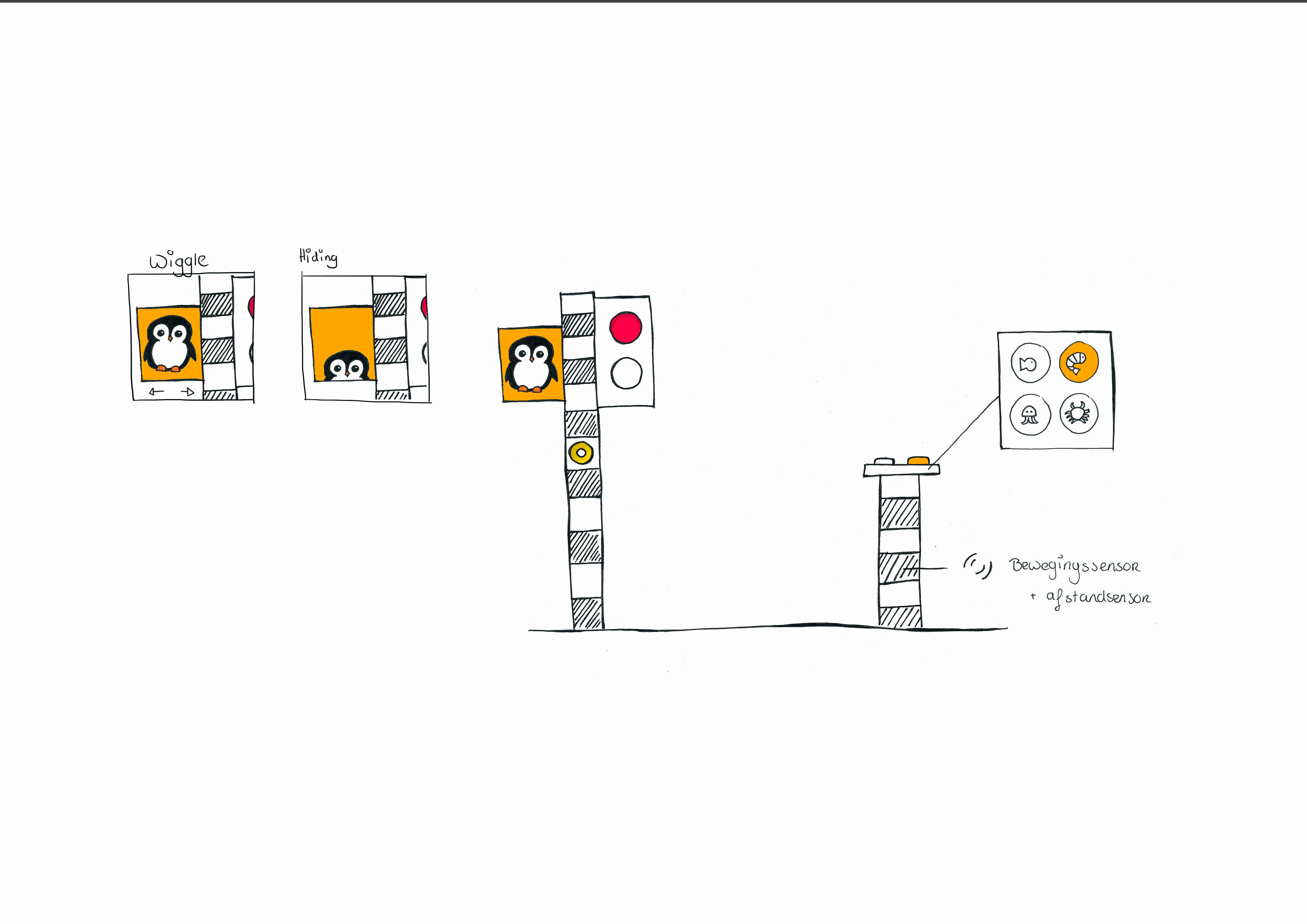 Het concept waar we op uit zijn gekomen na het onderzoek was Peter de Pinguin, een pinguin op een scherm die aan het stoplicht hangt.