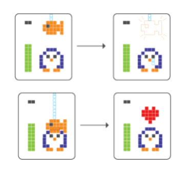 Het idee was dat Peter honger krijgt als het rood is. In deze tijd hebben mensen de kans om op een knop te drukken met icons van verschillende soorten voedsel.