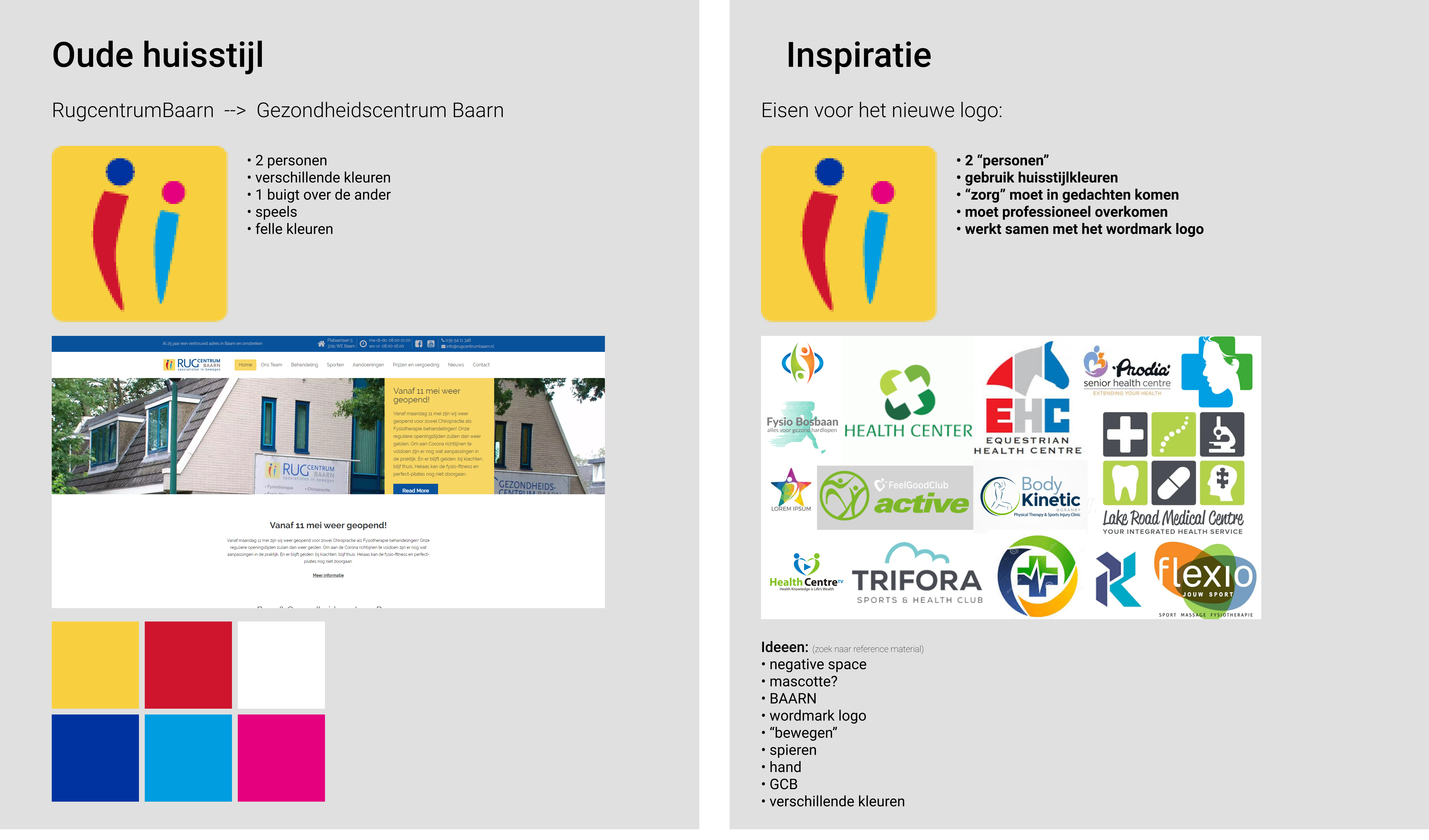 Na het analyseren van verschillende gezondheidscentra en hun logo's, en het onderzoeken van logo's via deskresearch had een moodboard met inspiratie opgezet en de elementen dat de logo's gebruiken.