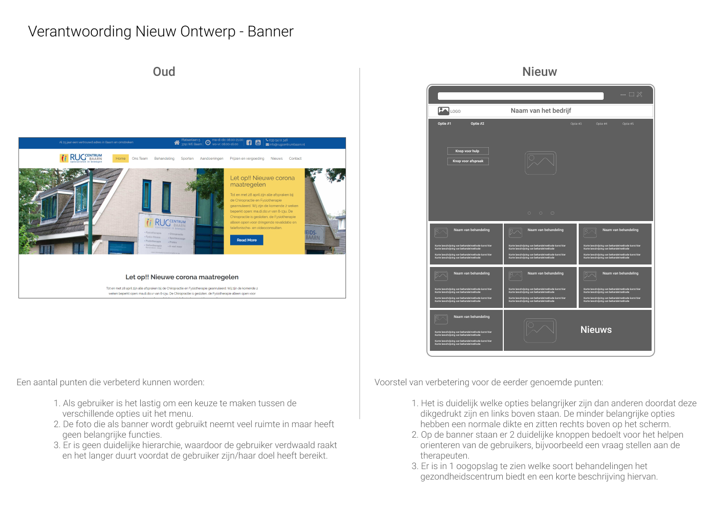 Deze methode had ik vervolgens toegepast in het herontwerp met de verbeterpunten ernaast. De opdrachtgever had het voorstel uiteindelijk goedgekeurd.